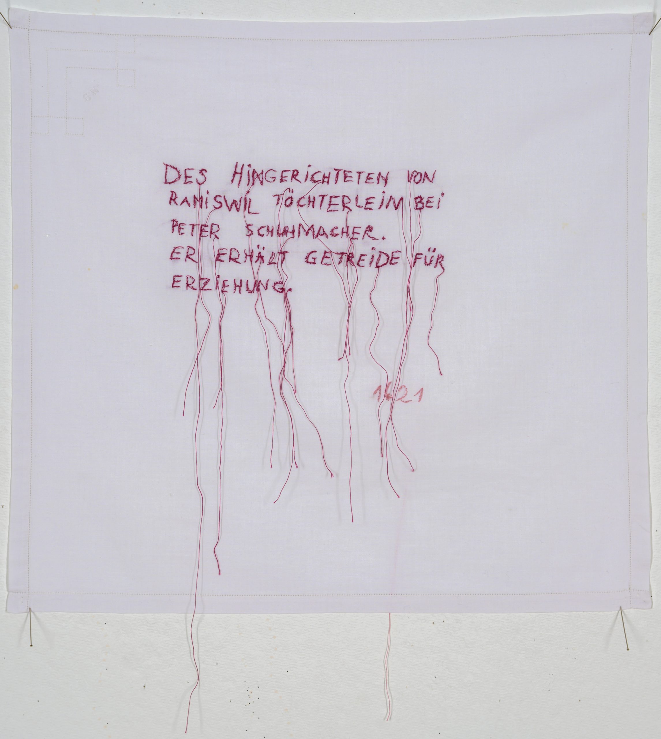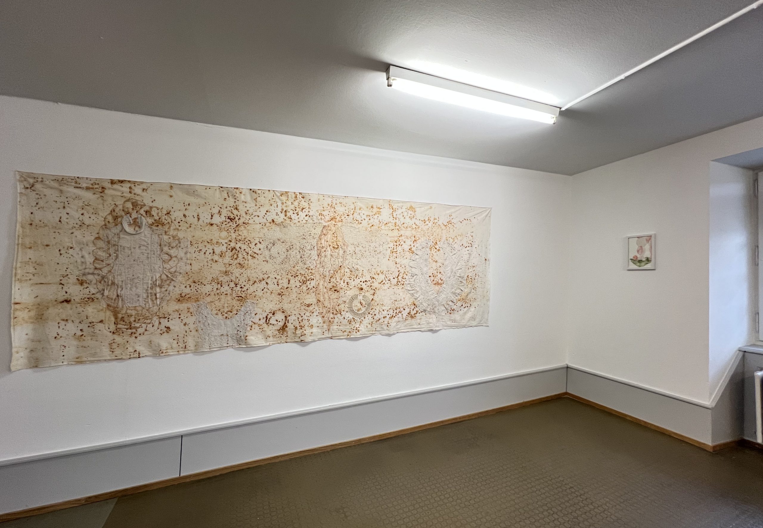 Can art stimulate a collective memory, initiate a process of remembering? Ingrid Gaier explores this question in her biography works. She uses materials such as textile, photo negatives, old papers and works with her stored stories. The animations, drawings and textile works make visible what is suppressed, superimposed or stereotyped. The works illustrate the inaccuracy of memories, they do not document but trace a life lived. Starting with the orphans who were originally cared for in the Old Hospital, the artist creates an atmospheric image of an almost forgotten marginalized group. She uses materials such as rust-dyed textiles and old embroidery, anonymous photos, old papers and works with her stored stories. Her gaze is empathetic and exploratory at the same time – a kind of „feminine archiving“ that does not document but traces the fears, abandonment and exposure based on the largely forgotten situation of Solothurn orphans.