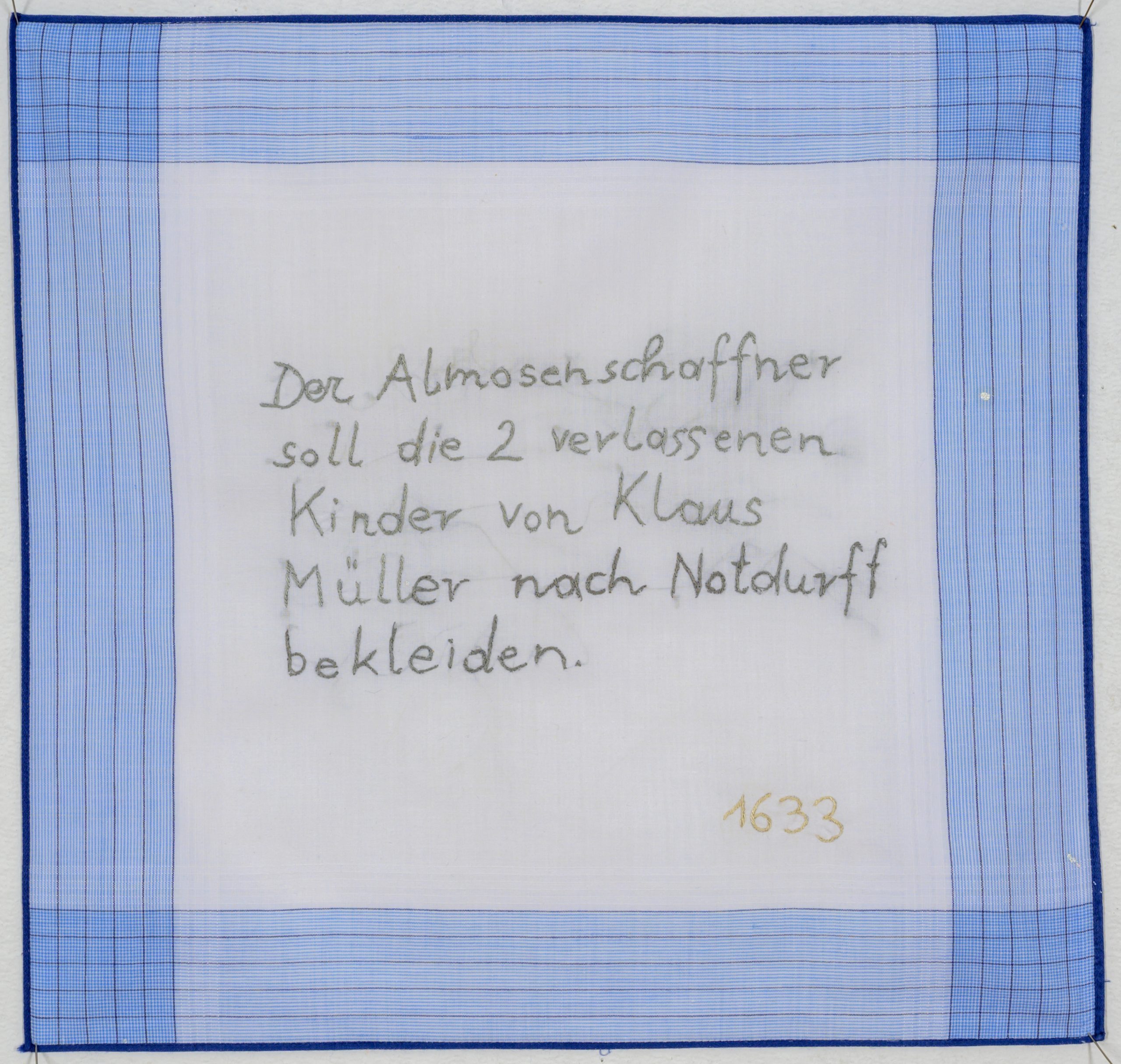 Ausgehend von den Waisenkindern, die ursprünglich im Alten Spital betreut wurden, schafft die Künstlerin ein atmosphärisches Bild einer nahezu vergessenen Randgruppe. Sie benutzt dazu Materialien wie durch Rost eingefärbtes Textil und alte Stickereien, anonyme Fotos, alte Papiere und arbeitet mit ihren gespeicherten Geschichten.